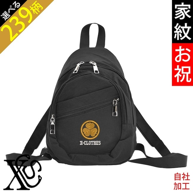 家紋お祝 還暦 ワンポイント 刺繍 リュック バックパック ボディバッグ レディース メンズ デイパック 雑貨 グッズ 自社ブランド 柄 丸に 五瓜 桔梗 巴 藤 羽 菱 唐花 木瓜 蔦 桐 クリスマス ori-a-bg170-b07-s