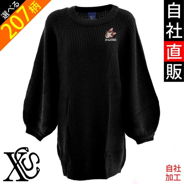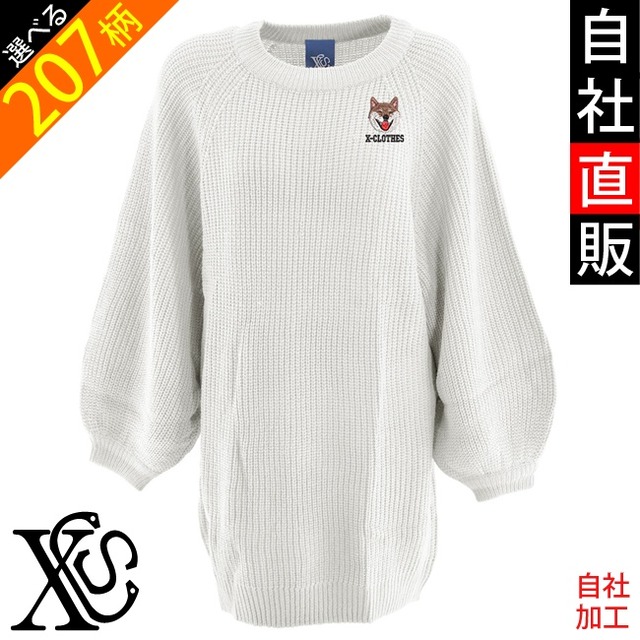 おもしろ ワンポイント 刺繍 ふんわり バルーン袖 ゆる ニット レディース トップス ニット セーター 長袖 大きいサイズ 雑貨 グッズ 自社ブランド オモシロ 文字 面白い クリスマス ori-a-set04-b03-s