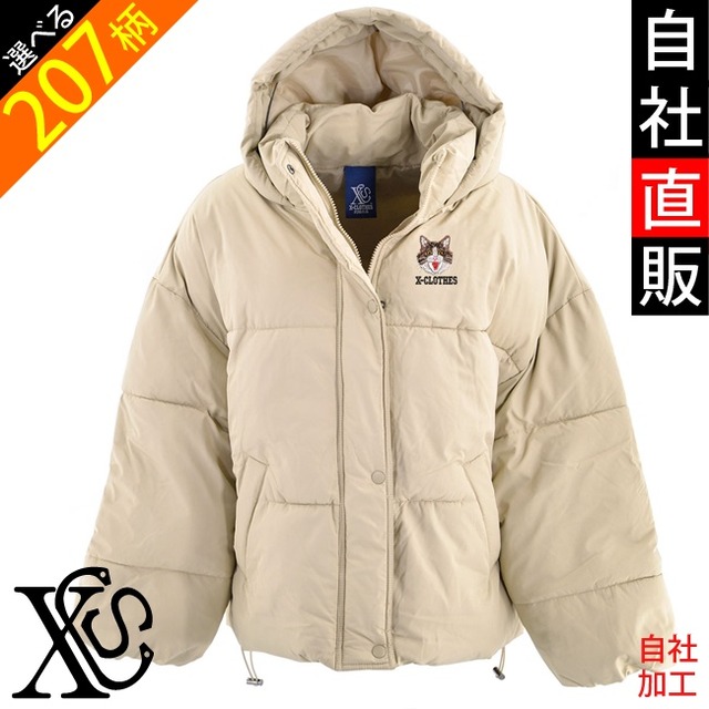 おもしろ ワンポイント 刺繍 フェイク ダウンジャケット レディース アウター 裾ラウンド フード付き 長袖 雑貨 グッズ 自社ブランド オモシロ 文字 面白い クリスマス ori-a-jkt20-g03-s