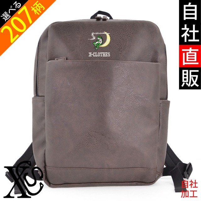 おもしろ ワンポイント 刺繍 シボ合成皮革 スクエアリュック デイパック ビジネスリュック メンズ 雑貨 グッズ 自社ブランド オモシロ 文字 面白い クリスマス ori-a-bg166-b03-s