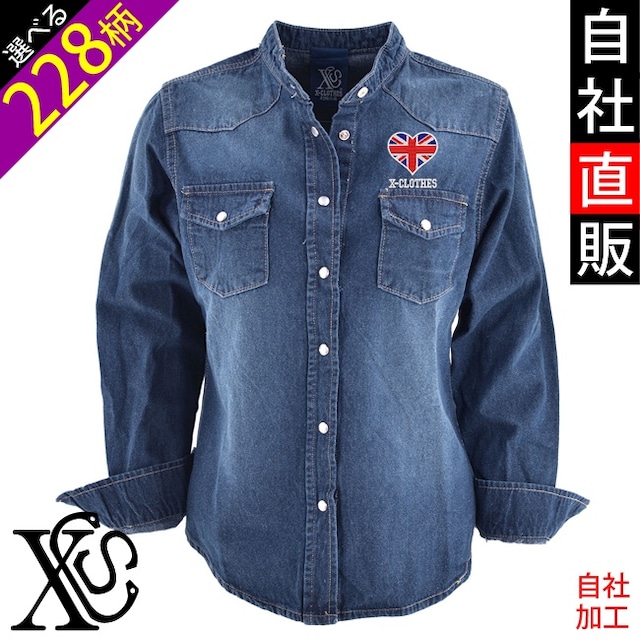 国旗 スカル ワンポイント 刺繍 長袖 ノーカラー ウエスタン デニムシャツ レディース トップス 薄手 大きいサイズ 雑貨 グッズ 自社ブランド 可愛い かぼちゃ ハロウィン カボチャ モチーフ アマミノクロウサギ 天然記念物 コウノトリ クリスマス ori-aw-dts6-b02-s