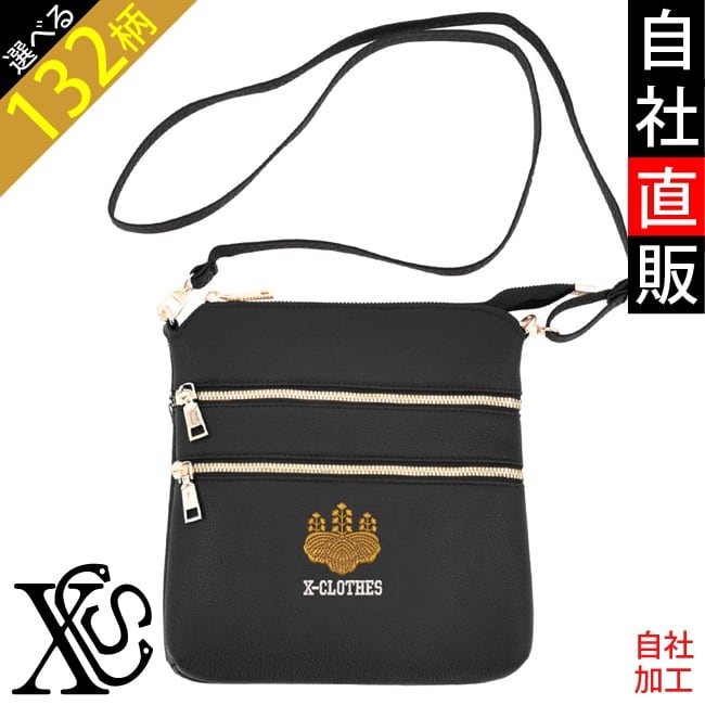 家紋 ワンポイント 刺繍 ショルダーバッグ レディース ポケット多い ショルダーバック フェイクレザー 雑貨 グッズ 自社ブランド 柄 丸に 五瓜 桔梗 巴 藤 羽 菱 唐花 木瓜 蔦 桐 クリスマス ori-a-bg138-b07-s | 刺繍の森X-CLOTHES【公式通販サイト】