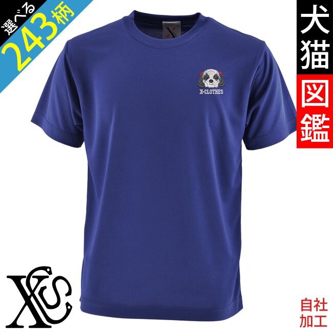 リアル 犬 猫 ワンポイント 刺繍 柔らかい肌触り 4.7オンス ドライ 半袖 Tシャツ シルキ-タッチ 吸水速乾 UVカット 雑貨 グッズ オリジナル 自社ブランド 柄 柴犬 チワワ シーズー シュナウザー パグ コーイケルホンディエ ビションフリーゼ クリスマス メンズ レディース ori-am-tst7-b10-s