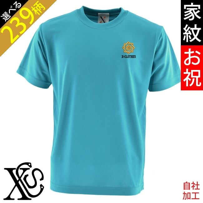 家紋お祝 還暦 ワンポイント 刺繍 柔らかい肌触り 4.7オンス ドライ 半袖 Tシャツ シルキ-タッチ 吸水速乾 UVカット 雑貨 グッズ オリジナル 自社ブランド 柄 丸に 五瓜 桔梗 巴 藤 羽 菱 唐花 木瓜 蔦 桐 クリスマス メンズ レディース ori-am-tst7-g07-s