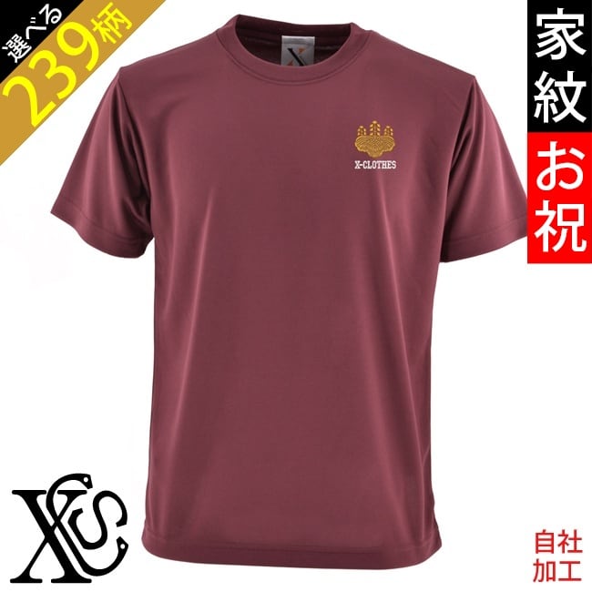 家紋お祝 還暦 ワンポイント 刺繍 柔らかい肌触り 4.7オンス ドライ 半袖 Tシャツ シルキ-タッチ 吸水速乾 UVカット 雑貨 グッズ オリジナル 自社ブランド 柄 丸に 五瓜 桔梗 巴 藤 羽 菱 唐花 木瓜 蔦 桐 クリスマス メンズ レディース ori-am-tst7-r07-s