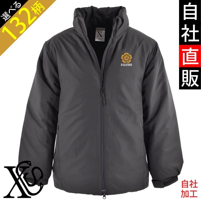 家紋 ワンポイント 刺繍 中綿 スタンド ジャケット メンズ アウターウェア インサレーテッド 雑貨 グッズ 自社ブランド 柄 丸に 五瓜 桔梗 巴 藤 羽 菱 唐花 木瓜 蔦 桐 クリスマス ori-a-jkt19-b07-s | 刺繍の森X-CLOTHES【公式通販サイト】