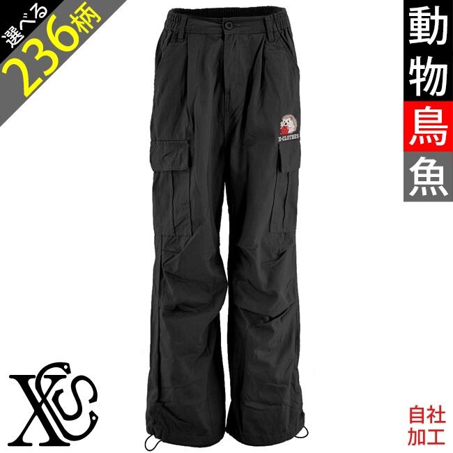 動物鳥魚 刺繍 オリジナル ワンポイント 大きいサイズ ゆったり ツイルワイドカーゴパンツ ワイドパンツ レディース メンズ ボトムス 雑貨 グッズ 自社ブランド 柄 馬 豚 魚 クリスマス ori-a-pat17-b06-s