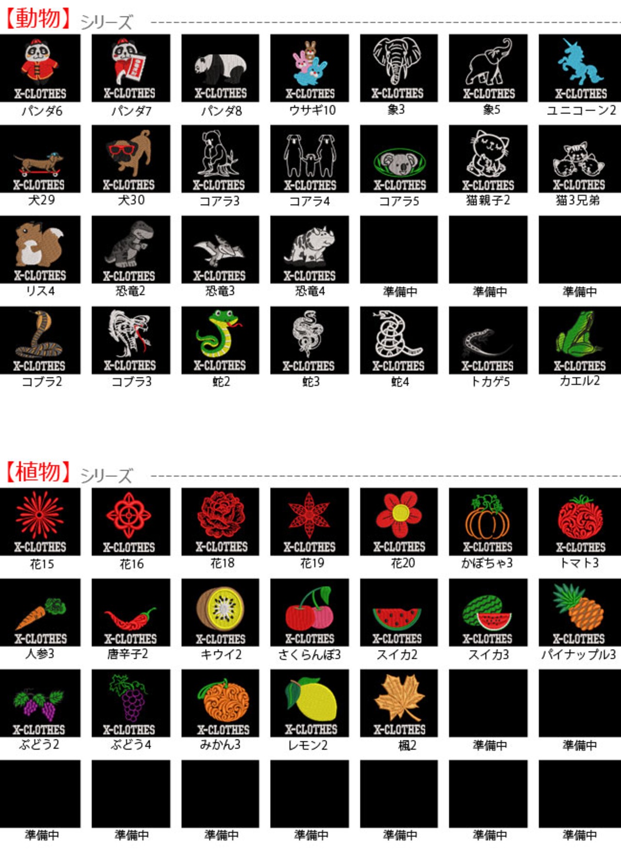 対応刺繍一覧:X-CLOTHES 【 】 1 2 3 4 5 6 7 8 9 - Accent X-CLOTHES 足跡 王冠 ギター 自転車 銃 船 星 レース柄 折紙 靴 ゴルフ 音符 バイオリン 侍 ハート さくら キューピッド イギリス イタリア スウェーデン フランス イノシシ カバ キリン サイ ダチョウ ライオン 象 馬 狼 ボス ワル カッパ かまいたち やまびこ 鬼 提灯おばけ ラブうさぎ ラブ魚 ラブ 犬 猫 スカル インディアン ロデオ ウエスタン 自由の女神 富士山 和太鼓 祭り 相撲 龍 らんちゅう 錦鯉 金魚 朱文金 出目金 琉金 グッピー 丹頂 カブトムシ クワガタ てんとう虫 蝶 トンボ 蜘蛛 パンダ ユニコーン コアラ ウサギ リス 恐竜 コブラ 蛇 トカゲ カエル お化け かぼちゃ コウモリ 魔女 オカメインコ シマエナガ ジョウビタキ ハシビロコウ 鶴 花 トマト 人参 唐辛子 キウイ さくらんぼ スイカ パイナップル ぶどう みかん レモン ハロウィン 国旗 動物 虫 昆虫 果物 野菜 グッズ 雑貨 ギフト 天然記念物 アホウドリ アマミノクロウサギ イリオモテヤマネコ オオサンショウウオ オオヤマネコ カササギ カモシカ コウノトリ トキ カーネーション 禁煙 手裏剣 薔薇 バラ フライパン 美容室 酒 飲食店 ありがとう