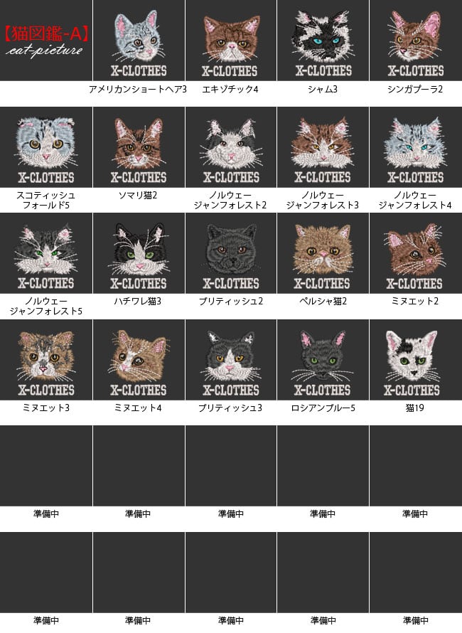 対応刺繍一覧:X-CLOTHES X-CLOTHES 1 2 3 4 5 6 7 8 9 0 猫図鑑 犬図鑑 アメリカンショートヘア エキゾチック シャム シンガプーラ スコティッシュフォールド ソマリ猫 ノルウェージャンフォレスト ハチワレ猫 ブリティッシュ ペルシャ猫 ミヌエット メインクーン ラグドール ラグドール ロシアンブルー 黒猫 三毛猫 風神 雷神 豆大福 白猫 キャバリア コーギー ゴードンセッター ゴールデンレトリバー サモエド シーズー シェパード シュナウザー ダックスフンド チャウチャウ チワワ トイプードル パグ ハスキー バセットハウンド パピヨン ビーグル フォックスハウンド ブルドッグ フレンチブルドッグ ペキニーズ ボイキンスパニエル ボーダーコリー ボクサー ボストンテリア ポメラニアン ミニチュアダックス ラットテリア ラブラドゥードル ラブラドールレトリバー ロットワイラー 柴犬 柴犬白 秋田犬 コーイケルホンディエ ビションフリーゼ