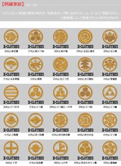 対応刺繍一覧:X-CLOTHES 伊達政宗 檜扇 違い矢 井桁 右重ね違い鷹の羽 下がり藤 花菱 割り菱 鬼蔦 亀甲に花菱 安藤藤 桔梗 橘 九つ星 九枚笹 九曜 隅立て四つ目 剣花菱 剣三つ柏 剣片喰 五瓜に唐花 庵木瓜 五三桐 五本骨扇 根笹 左三階松 笹竜胆 三つ引き 三つ星 三つ星に一の字 三つ柏 陰蔦 三つ鱗 三階菱 四つ目菱 四方剣花菱 四方木瓜 七つ星 十字 松皮菱 上の字 尻合わせ三つ蔦 右三つ巴 星梅鉢 中陰蔦 蔦 釘抜き 渡辺星 日の丸扇 梅の花 梅鉢 平四つ目 並び鷹の羽 5右二つ巴 並び矢 変わり揚羽蝶 片喰 抱き沢瀉 抱き柏 抱き茗荷 蔓柏 木瓜 揚羽蝶 立ち梶の葉 下がり藤 立ち沢瀉 亀甲花菱 菊水 九曜 隅切り角に木瓜 剣花菱 剣木瓜 源氏車 違い鷹の羽 五瓜に桔梗 五瓜に四つ目 唐花 五三桐 左 三つ割り菊 扇 藤巴 三階菱 違い丁子 七宝に花菱 上り藤 星梅鉢 折敷に三文字 鶴の丸 徳川葵 二引両 八つ矢車 八重桜 抱き茗荷 違い柏 うんこ コーヒー めでたい 花 菊の紋章 魚 犬 派 斎藤道三 坂本龍馬 自由飲酒 党 招き猫 上杉氏 陣旗 毘 龍 織田信長 真田幸村 西郷隆盛 石田三成 大谷吉継 鳥 徳川家康 猫派 不苦労 武田信玄 豊臣秀吉-五七桐 太閤桐 明智光秀 毛利家 丸に