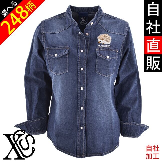 野菜 果物 ワンポイント 刺繍 長袖 ノーカラー ウエスタン デニムシャツ レディース トップス 薄手 大きいサイズ 雑貨 グッズ 自社ブランド プレゼント 動物 昆虫 誕生日 お祝い 父の日 ギフト 母の日 クリスマス ori-aw-dts6-b01-s | 刺繍の森X-CLOTHES【公式通販サイト】