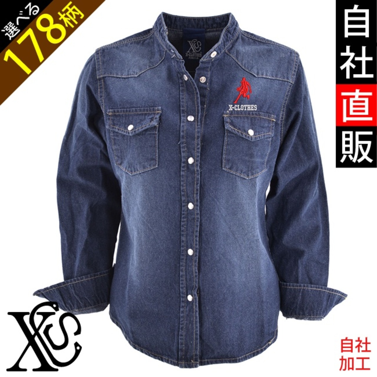 スポーツ シルエット ワンポイント 刺繍 長袖 ノーカラー ウエスタン デニムシャツ レディース トップス 薄手 大きいサイズ 雑貨 グッズ 自社ブランド 卒業 記念品 部活 卒団 サッカー バスケ テニス 誕生日 クリスマス ori-aw-dts6-b05-s | 刺繍の森X-CLOTHES【公式通販サイト】