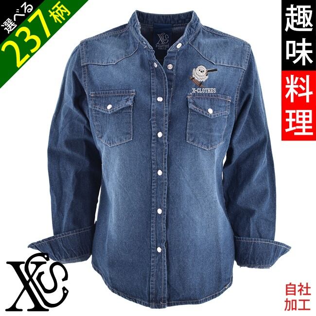 リアルシマエナガ 馬 パンダ ワンポイント 刺繍 長袖 ノーカラー ウエスタン デニムシャツ レディース トップス 薄手 大きいサイズ 雑貨 グッズ 自社ブランド 柄 ハシビロコウ 猫 犬 馬 ハリネズミ クリスマス ori-aw-dts6-b09-s | 刺繍の森X-CLOTHES【公式通販サイト】