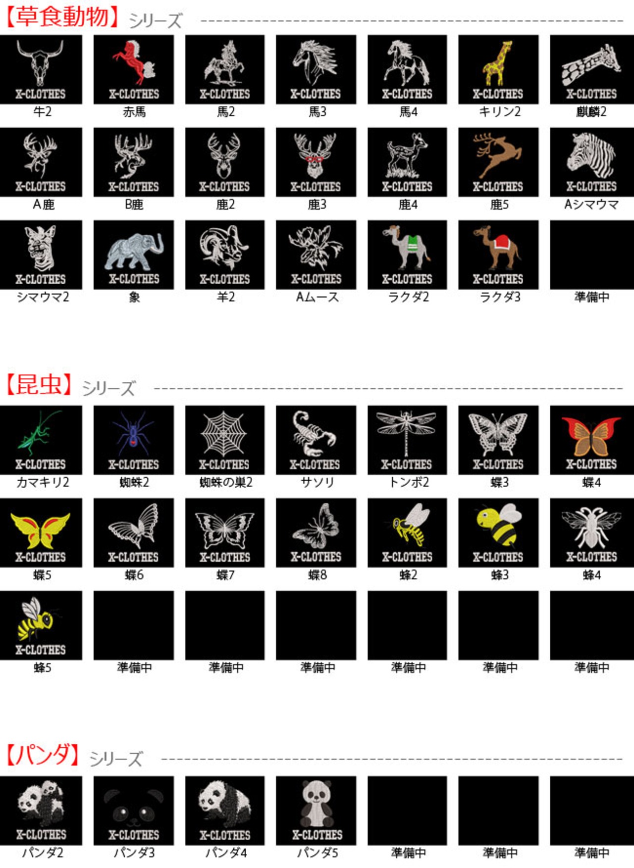 対応刺繍一覧:X-CLOTHES A B C D E F G 2 3 4 5 6 7 8 9 10 11 12 13 14 15 16 17 18 19 20 21 22 23 24 25 26 27 28 29 30 31 32 33 34 35 36 37 38 39 猫 パンダ 犬 アライグマ うさぎ ウサギ カメ キツネ コアラ ハリネズミ 針ネズミ リス 狼顔 狼 熊顔 熊 虎 豹顔 豹 ライオン ライオン顔 牛 赤馬 馬 キリン 麒麟 鹿 シマウマ 象 羊 ムース ラクダ カマキリ 蜘蛛 蜘蛛の巣 サソリ トンボ 蝶 蜂 イグアナ カメレオン トカゲ ワニ イルカ カジキ 鯉 鯨 グッピー クマノミ 魚 サメ タコ タツノオトシゴ 熱帯魚 マグロ インコ クジャク 小鳥 鶏の親子 シマエナガ 鷹 ハチドリ ハト ひよこ フクロウ フラミンゴ 文鳥 ペンギン 梅 桜 ハイビスカス 花 薔薇 かぼちゃ キノコ さやえんどう X唐辛子 ハート唐辛子 トマト ナス 人参 白菜 ブロッコリー ラディッシュ イチゴ さくらんぼ パイナップル パプリカ リンゴ 洋ナシ 雨 落葉 傘 木と動物 クローバー サンゴ 焚火 葉っぱ 葉っぱ ハワイアン ヤシの木 雪 グッズ 珍しい 雑貨 プレゼント 誕生日 ギフト 卒団 記念品 部活 卒業 アマビエ 三密 あまびえ 3密 疫病退散 夏用