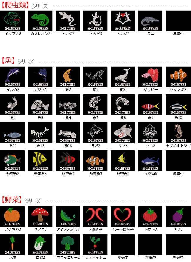 対応刺繍一覧:X-CLOTHES A B C D E F G 2 3 4 5 6 7 8 9 10 11 12 13 14 15 16 17 18 19 20 21 22 23 24 25 26 27 28 29 30 31 32 33 34 35 36 37 38 39 猫 パンダ 犬 アライグマ うさぎ ウサギ カメ キツネ コアラ ハリネズミ 針ネズミ リス 狼顔 狼 熊顔 熊 虎 豹顔 豹 ライオン ライオン顔 牛 赤馬 馬 キリン 麒麟 鹿 シマウマ 象 羊 ムース ラクダ カマキリ 蜘蛛 蜘蛛の巣 サソリ トンボ 蝶 蜂 イグアナ カメレオン トカゲ ワニ イルカ カジキ 鯉 鯨 グッピー クマノミ 魚 サメ タコ タツノオトシゴ 熱帯魚 マグロ インコ クジャク 小鳥 鶏の親子 シマエナガ 鷹 ハチドリ ハト ひよこ フクロウ フラミンゴ 文鳥 ペンギン 梅 桜 ハイビスカス 花 薔薇 かぼちゃ キノコ さやえんどう X唐辛子 ハート唐辛子 トマト ナス 人参 白菜 ブロッコリー ラディッシュ イチゴ さくらんぼ パイナップル パプリカ リンゴ 洋ナシ 雨 落葉 傘 木と動物 クローバー サンゴ 焚火 葉っぱ 葉っぱ ハワイアン ヤシの木 雪 グッズ 珍しい 雑貨 プレゼント 誕生日 ギフト 卒団 記念品 部活 卒業 アマビエ 三密 あまびえ 3密 疫病退散 夏用