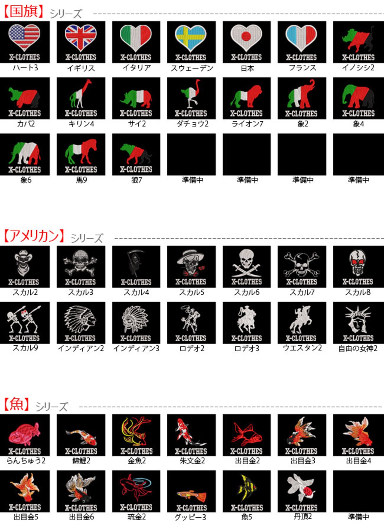 対応刺繍一覧:X-CLOTHES 【 】 1 2 3 4 5 6 7 8 9 - Accent X-CLOTHES 足跡 王冠 ギター 自転車 銃 船 星 レース柄 折紙 靴 ゴルフ 音符 バイオリン 侍 ハート さくら キューピッド イギリス イタリア スウェーデン フランス イノシシ カバ キリン サイ ダチョウ ライオン 象 馬 狼 ボス ワル カッパ かまいたち やまびこ 鬼 提灯おばけ ラブうさぎ ラブ魚 ラブ 犬 猫 スカル インディアン ロデオ ウエスタン 自由の女神 富士山 和太鼓 祭り 相撲 龍 らんちゅう 錦鯉 金魚 朱文金 出目金 琉金 グッピー 丹頂 カブトムシ クワガタ てんとう虫 蝶 トンボ 蜘蛛 パンダ ユニコーン コアラ ウサギ リス 恐竜 コブラ 蛇 トカゲ カエル お化け かぼちゃ コウモリ 魔女 オカメインコ シマエナガ ジョウビタキ ハシビロコウ 鶴 花 トマト 人参 唐辛子 キウイ さくらんぼ スイカ パイナップル ぶどう みかん レモン ハロウィン 国旗 動物 虫 昆虫 果物 野菜 グッズ 雑貨 ギフト 天然記念物 アホウドリ アマミノクロウサギ イリオモテヤマネコ オオサンショウウオ オオヤマネコ カササギ カモシカ コウノトリ トキ カーネーション 禁煙 手裏剣 薔薇 バラ フライパン 美容室 酒 飲食店 ありがとう