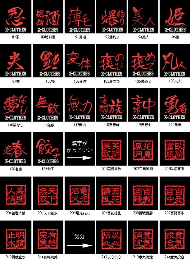 対応刺繍一覧:X-CLOTHES おもしろ文字 四文字熟語 X-CLOTHES アホ イケ麺 うんこ げん気 パンだ ひじき もやし やる気 らーめん 愛妻家 飲酒党 俺可愛 花粉症 感謝 甘党 還暦 鬼だ 鬼嫁 激やせ 限界 故障中 好き 幸せ 腰痛 最強 妻 雑草 侍 修業中 傷 少食 笑顔 神だ2 神だ3 辛党 草食 大福 断酒 釣人 天然 特攻 毒舌 豚豚 肉食 忍 燃料酒 薄毛 爆釣り 美人 姫 夫 福 変体 褒のび 褒めて 凡人夢なし 無敵 無力 妄想族 妄想中 勇者 老春 餃子 卒団 記念品 部活 卒業 鬼 あらまニャン お疲れパン カタツムリ カンフーニャン カンフーニャン デブワン なになにワン ハエ びっくりニャン レッサーパンダ 雨カエル 何してるニャン 何見てるワン 画家ナマケモノ 嬉しいワン 機嫌悪ワン 見つめる猫 見るなワン 幸うんだワン 考カエル 真犯人ワン 怒るニャン 動けないニャン 不機嫌ニャン 食べ物 ー カレー たんぽぽ トビウオ とんかつ 海老 茶道 唐揚げ 辛神 徳川家康 忍者 風神 雷神 柴犬 猫 ペキニーズ