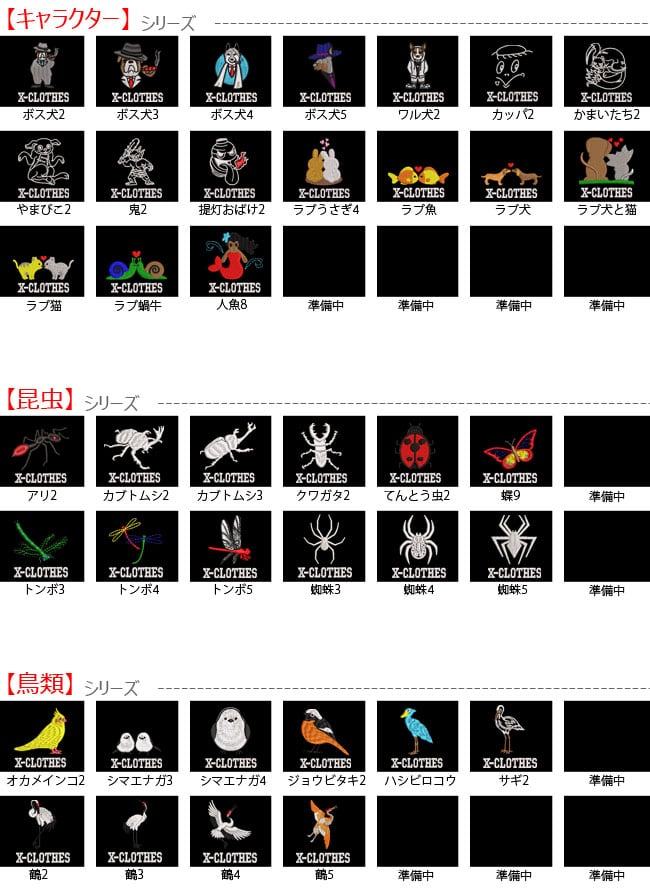 対応刺繍一覧:X-CLOTHES 【 】 1 2 3 4 5 6 7 8 9 - Accent X-CLOTHES 足跡 王冠 ギター 自転車 銃 船 星 レース柄 折紙 靴 ゴルフ 音符 バイオリン 侍 ハート さくら キューピッド イギリス イタリア スウェーデン フランス イノシシ カバ キリン サイ ダチョウ ライオン 象 馬 狼 ボス ワル カッパ かまいたち やまびこ 鬼 提灯おばけ ラブうさぎ ラブ魚 ラブ 犬 猫 スカル インディアン ロデオ ウエスタン 自由の女神 富士山 和太鼓 祭り 相撲 龍 らんちゅう 錦鯉 金魚 朱文金 出目金 琉金 グッピー 丹頂 カブトムシ クワガタ てんとう虫 蝶 トンボ 蜘蛛 パンダ ユニコーン コアラ ウサギ リス 恐竜 コブラ 蛇 トカゲ カエル お化け かぼちゃ コウモリ 魔女 オカメインコ シマエナガ ジョウビタキ ハシビロコウ 鶴 花 トマト 人参 唐辛子 キウイ さくらんぼ スイカ パイナップル ぶどう みかん レモン ハロウィン 国旗 動物 虫 昆虫 果物 野菜 グッズ 雑貨 ギフト 天然記念物 アホウドリ アマミノクロウサギ イリオモテヤマネコ オオサンショウウオ オオヤマネコ カササギ カモシカ コウノトリ トキ カーネーション 禁煙 手裏剣 薔薇 バラ フライパン 美容室 酒 飲食店 ありがとう