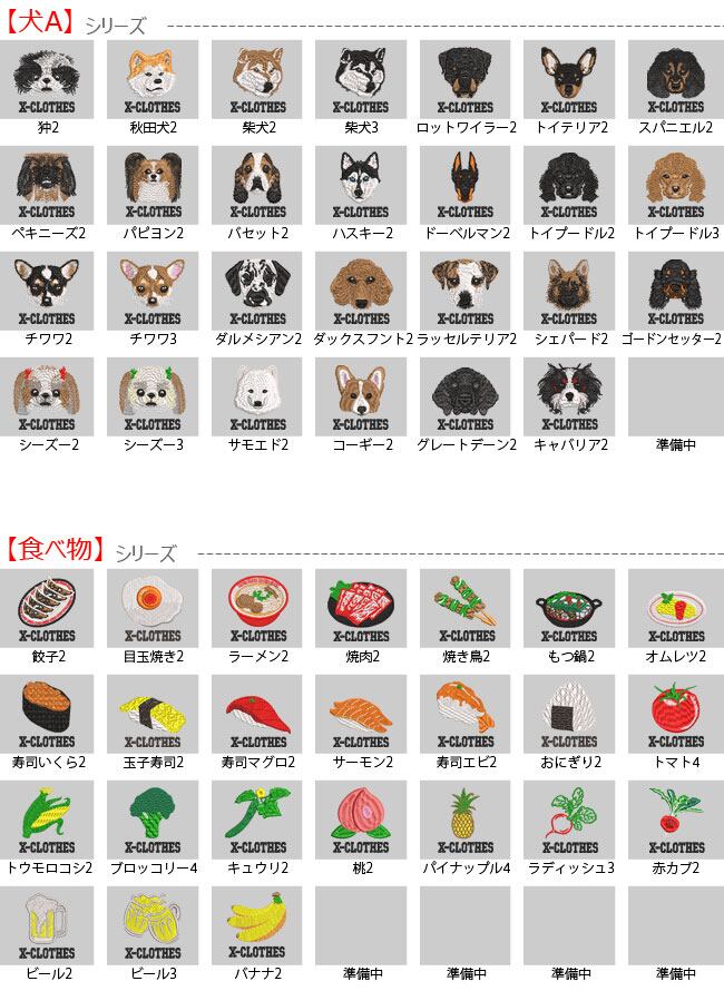 対応刺繍一覧:X-CLOTHES 兜 直江兼続 ローマ 伊達政宗 源義経 上杉謙信 織田信長 真田幸村 関羽 金魚 カニ 柴犬 ゴードンセッター サモエド ダックスフント トイプードル ドーベルマン ハスキー バセット パピヨン ペキニーズ ロットワイラー 柴犬 狆 チワワ キャバリア グレートデーン コーギー シーズー 秋田犬 ダルメシアン トイテリア スパニエル ラッセルテリア シェパード パグ ハスキー ビーグル フレンチブルドッグ ボーダーコリー ボストンテリア ポメラニアン マルチーズ ミニチュアダックス ヨークシャーテリア 豆柴 グレーハウンド ゴールデンレトリバー シュナウザー チューバ トロンボーン 囲碁 競艇 競馬 競輪 将棋 日本酒 アメフト テニス カーネーション おにぎり オムレツ キュウリ トマト ビール ブロッコリー もつ鍋 ラーメン 寿司 焼き鳥 焼肉 桃 目玉焼き 餃子 鳳凰 インコ カワセミ コザクラ セキセイ フクロウ ペンギン 鷹 ボタン マメルリハ 桜 文鳥 オカメ コザクラ シルバー ハシビロコウ カンガルー コアラ ボスゴリラ 恐竜 ハムスター パンダ ユニコン 牛 虎 子豚 カメ 狼 ライオン うさぎ モモンガ レッサー 龍 アルパカ カワウソ チンチラ 猫 黒 白 馬