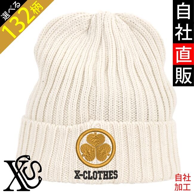 家紋 ワンポイント 刺繍 帽子 アクリル カラーワッチ ニット帽 ニットキャップ メンズ レディース 秋冬 雑貨 グッズ 自社ブランド 柄 丸に 五瓜 桔梗 巴 藤 羽 菱 唐花 木瓜 蔦 桐 クリスマス ori-a-cap74-g07-s | 刺繍の森X-CLOTHES【公式通販サイト】