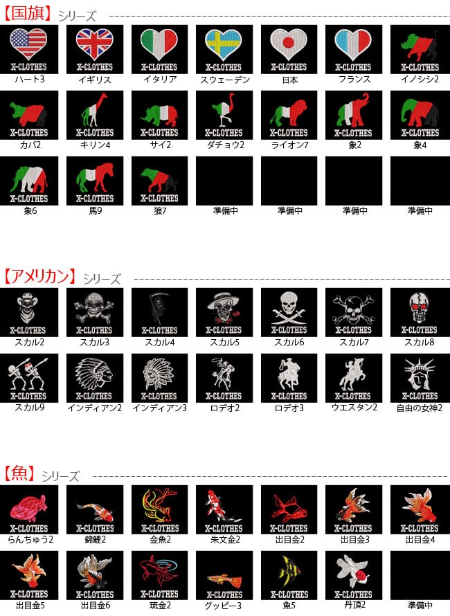 対応刺繍一覧:X-CLOTHES 【 】 1 2 3 4 5 6 7 8 9 - Accent X-CLOTHES 足跡 王冠 ギター 自転車 銃 船 星 レース柄 折紙 靴 ゴルフ 音符 バイオリン 侍 ハート さくら キューピッド イギリス イタリア スウェーデン フランス イノシシ カバ キリン サイ ダチョウ ライオン 象 馬 狼 ボス ワル カッパ かまいたち やまびこ 鬼 提灯おばけ ラブうさぎ ラブ魚 ラブ 犬 猫 スカル インディアン ロデオ ウエスタン 自由の女神 富士山 和太鼓 祭り 相撲 龍 らんちゅう 錦鯉 金魚 朱文金 出目金 琉金 グッピー 丹頂 カブトムシ クワガタ てんとう虫 蝶 トンボ 蜘蛛 パンダ ユニコーン コアラ ウサギ リス 恐竜 コブラ 蛇 トカゲ カエル お化け かぼちゃ コウモリ 魔女 オカメインコ シマエナガ ジョウビタキ ハシビロコウ 鶴 花 トマト 人参 唐辛子 キウイ さくらんぼ スイカ パイナップル ぶどう みかん レモン ハロウィン 国旗 動物 虫 昆虫 果物 野菜 グッズ 雑貨 ギフト 天然記念物 アホウドリ アマミノクロウサギ イリオモテヤマネコ オオサンショウウオ オオヤマネコ カササギ カモシカ コウノトリ トキ カーネーション 禁煙 手裏剣 薔薇 バラ フライパン 美容室 酒 飲食店 ありがとう