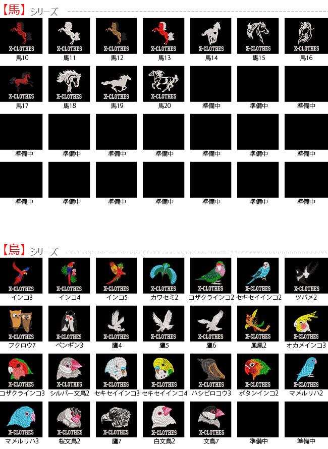 対応刺繍一覧:X-CLOTHES 兜 直江兼続 ローマ 伊達政宗 源義経 上杉謙信 織田信長 真田幸村 関羽 金魚 カニ 柴犬 ゴードンセッター サモエド ダックスフント トイプードル ドーベルマン ハスキー バセット パピヨン ペキニーズ ロットワイラー 柴犬 狆 チワワ キャバリア グレートデーン コーギー シーズー 秋田犬 ダルメシアン トイテリア スパニエル ラッセルテリア シェパード パグ ハスキー ビーグル フレンチブルドッグ ボーダーコリー ボストンテリア ポメラニアン マルチーズ ミニチュアダックス ヨークシャーテリア 豆柴 グレーハウンド ゴールデンレトリバー シュナウザー チューバ トロンボーン 囲碁 競艇 競馬 競輪 将棋 日本酒 アメフト テニス カーネーション おにぎり オムレツ キュウリ トマト ビール ブロッコリー もつ鍋 ラーメン 寿司 焼き鳥 焼肉 桃 目玉焼き 餃子 鳳凰 インコ カワセミ コザクラ セキセイ フクロウ ペンギン 鷹 ボタン マメルリハ 桜 文鳥 オカメ コザクラ シルバー ハシビロコウ カンガルー コアラ ボスゴリラ 恐竜 ハムスター パンダ ユニコン 牛 虎 子豚 カメ 狼 ライオン うさぎ モモンガ レッサー 龍 アルパカ カワウソ チンチラ 猫 黒 白 馬