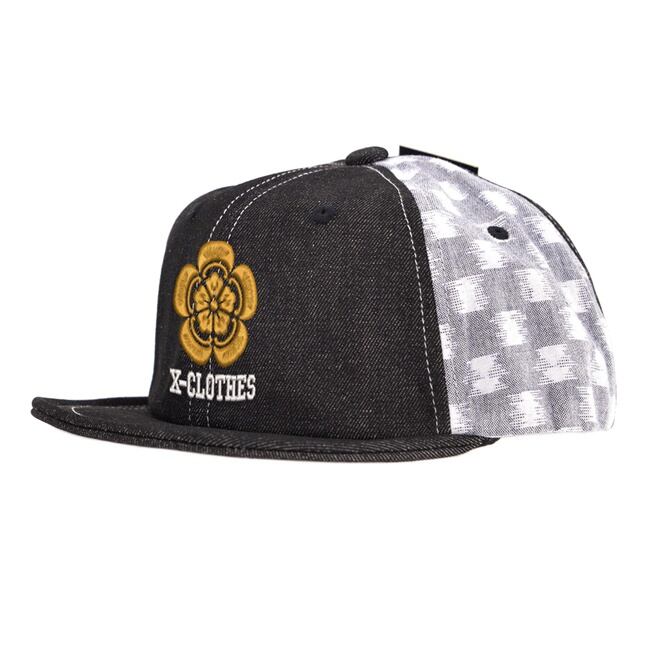 家紋 ワンポイント 刺繍 帽子 久留米絣 デニム アンパイアキャップ 小ツバ 伝統 メンズ レディース 雑貨 グッズ 自社ブランド 柄 丸に 五瓜 桔梗 巴 藤 羽 菱 唐花 木瓜 蔦 桐 クリスマス ori-a-cap76-b07-s | 刺繍の森X-CLOTHES【公式通販サイト】