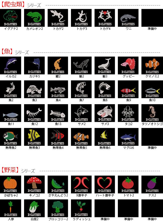 対応刺繍一覧:X-CLOTHES A B C D E F G 2 3 4 5 6 7 8 9 10 11 12 13 14 15 16 17 18 19 20 21 22 23 24 25 26 27 28 29 30 31 32 33 34 35 36 37 38 39 猫 パンダ 犬 アライグマ うさぎ ウサギ カメ キツネ コアラ ハリネズミ 針ネズミ リス 狼顔 狼 熊顔 熊 虎 豹顔 豹 ライオン ライオン顔 牛 赤馬 馬 キリン 麒麟 鹿 シマウマ 象 羊 ムース ラクダ カマキリ 蜘蛛 蜘蛛の巣 サソリ トンボ 蝶 蜂 イグアナ カメレオン トカゲ ワニ イルカ カジキ 鯉 鯨 グッピー クマノミ 魚 サメ タコ タツノオトシゴ 熱帯魚 マグロ インコ クジャク 小鳥 鶏の親子 シマエナガ 鷹 ハチドリ ハト ひよこ フクロウ フラミンゴ 文鳥 ペンギン 梅 桜 ハイビスカス 花 薔薇 かぼちゃ キノコ さやえんどう X唐辛子 ハート唐辛子 トマト ナス 人参 白菜 ブロッコリー ラディッシュ イチゴ さくらんぼ パイナップル パプリカ リンゴ 洋ナシ 雨 落葉 傘 木と動物 クローバー サンゴ 焚火 葉っぱ 葉っぱ ハワイアン ヤシの木 雪 グッズ 珍しい 雑貨 プレゼント 誕生日 ギフト 卒団 記念品 部活 卒業 アマビエ 三密 あまびえ 3密 疫病退散 夏用