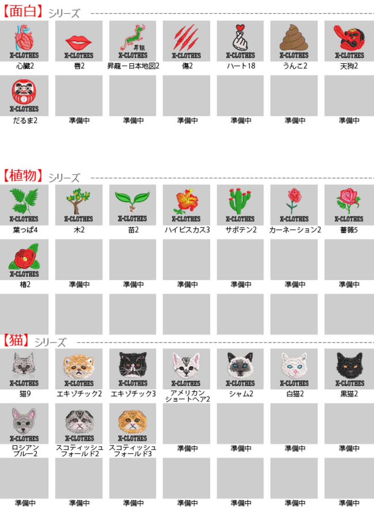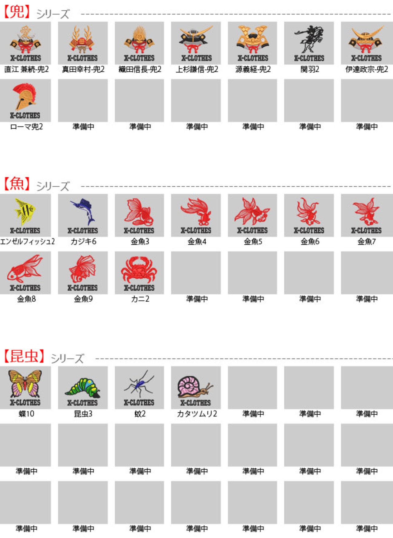 対応刺繍一覧:X-CLOTHES 兜 直江兼続 ローマ 伊達政宗 源義経 上杉謙信 織田信長 真田幸村 関羽 金魚 カニ 柴犬 ゴードンセッター サモエド ダックスフント トイプードル ドーベルマン ハスキー バセット パピヨン ペキニーズ ロットワイラー 柴犬 狆 チワワ キャバリア グレートデーン コーギー シーズー 秋田犬 ダルメシアン トイテリア スパニエル ラッセルテリア シェパード パグ ハスキー ビーグル フレンチブルドッグ ボーダーコリー ボストンテリア ポメラニアン マルチーズ ミニチュアダックス ヨークシャーテリア 豆柴 グレーハウンド ゴールデンレトリバー シュナウザー チューバ トロンボーン 囲碁 競艇 競馬 競輪 将棋 日本酒 アメフト テニス カーネーション おにぎり オムレツ キュウリ トマト ビール ブロッコリー もつ鍋 ラーメン 寿司 焼き鳥 焼肉 桃 目玉焼き 餃子 鳳凰 インコ カワセミ コザクラ セキセイ フクロウ ペンギン 鷹 ボタン マメルリハ 桜 文鳥 オカメ コザクラ シルバー ハシビロコウ カンガルー コアラ ボスゴリラ 恐竜 ハムスター パンダ ユニコン 牛 虎 子豚 カメ 狼 ライオン うさぎ モモンガ レッサー 龍 アルパカ カワウソ チンチラ 猫 黒 白 馬