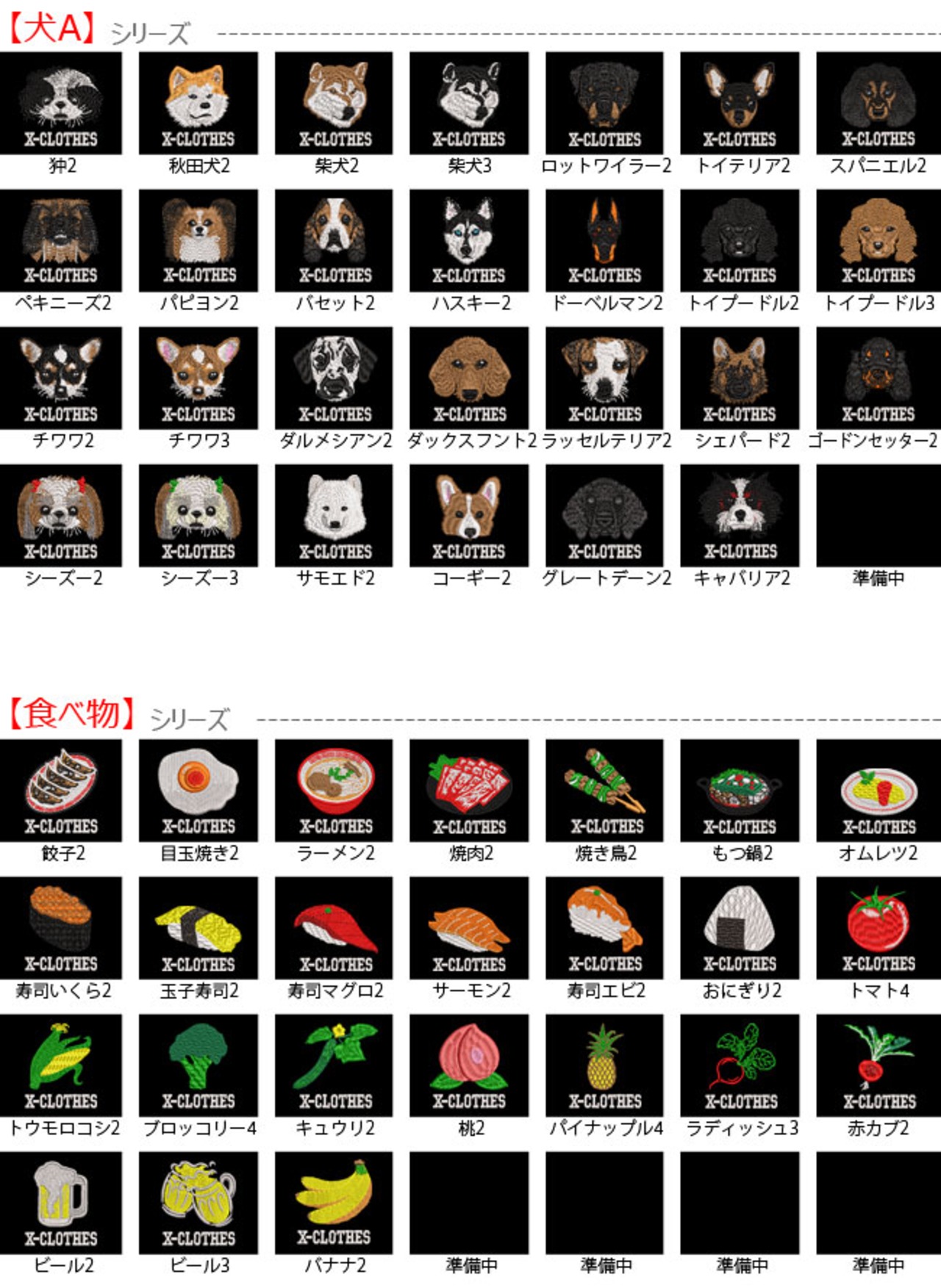 対応刺繍一覧:X-CLOTHES 兜 直江兼続 ローマ 伊達政宗 源義経 上杉謙信 織田信長 真田幸村 関羽 金魚 カニ 柴犬 ゴードンセッター サモエド ダックスフント トイプードル ドーベルマン ハスキー バセット パピヨン ペキニーズ ロットワイラー 柴犬 狆 チワワ キャバリア グレートデーン コーギー シーズー 秋田犬 ダルメシアン トイテリア スパニエル ラッセルテリア シェパード パグ ハスキー ビーグル フレンチブルドッグ ボーダーコリー ボストンテリア ポメラニアン マルチーズ ミニチュアダックス ヨークシャーテリア 豆柴 グレーハウンド ゴールデンレトリバー シュナウザー チューバ トロンボーン 囲碁 競艇 競馬 競輪 将棋 日本酒 アメフト テニス カーネーション おにぎり オムレツ キュウリ トマト ビール ブロッコリー もつ鍋 ラーメン 寿司 焼き鳥 焼肉 桃 目玉焼き 餃子 鳳凰 インコ カワセミ コザクラ セキセイ フクロウ ペンギン 鷹 ボタン マメルリハ 桜 文鳥 オカメ コザクラ シルバー ハシビロコウ カンガルー コアラ ボスゴリラ 恐竜 ハムスター パンダ ユニコン 牛 虎 子豚 カメ 狼 ライオン うさぎ モモンガ レッサー 龍 アルパカ カワウソ チンチラ 猫 黒 白 馬