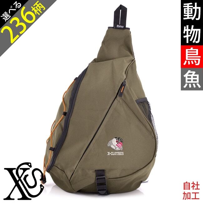 動物鳥魚 刺繍 オリジナル ワンポイント カラーゴム ワンショル バッグ ボディバッグ メンズ ショルダーバック レディース ブラック 黒 ロゴ 柄 無地 グッズ 父の日 母の日 プレゼントギフト 馬 鳥 豚 魚 ori-a-bag27-b06-s