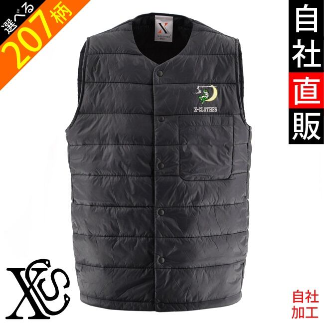 ワンポイント 刺繍 オリジナル 中綿入り 薄い インナー ベスト ライト ベスト 後裾が長めのダックテール ブラック ネイビー 柄 ロゴ ギフト プレゼント 誕生日 父の日 母の日 おもしろ 面白い 文字 グッズ 雑貨 ふざけ 語録 4文字熟語 ori-a-bst2-b03-s | 刺繍の森X-CLOTHES【公式通販サイト】