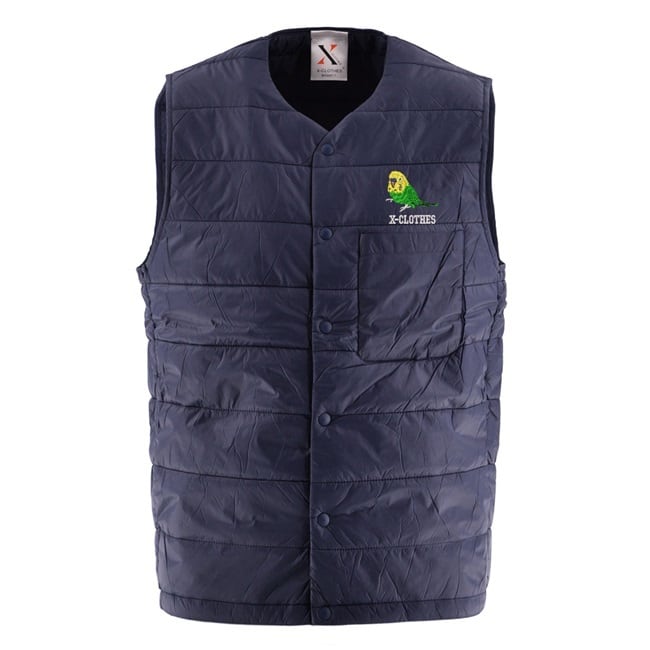 ワンポイント 刺繍 オリジナル 中綿入り 薄い インナー ベスト ライト ベスト 後裾が長めのダックテール ブラック ネイビー 柄 野鳥 文鳥 猫 犬 鳥獣戯画 鉄道 ハリネズミ グッズ ori-a-bst2-b08-s | 刺繍の森X-CLOTHES【公式通販サイト】