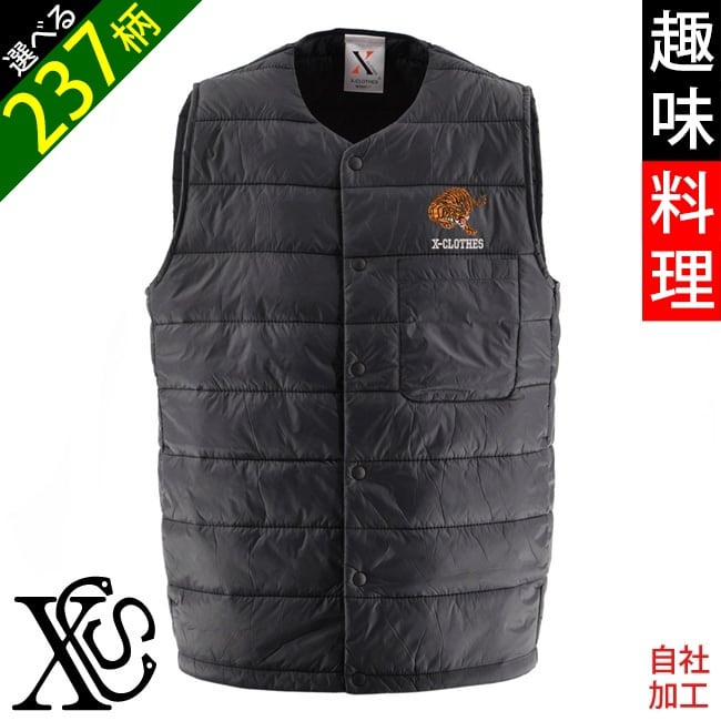 面白 野菜 果物 電車 花 ワンポイント 刺繍 オリジナル 中綿入り 薄い インナー ベスト ライト 後裾が長めのダックテール 柄 グッズ ori-a-bst2-b09-s
