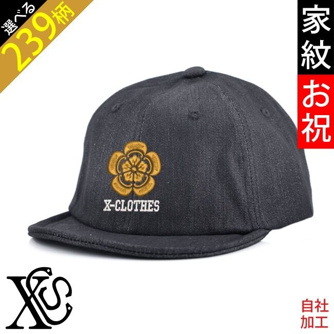 家紋お祝 還暦 ワンポイント 刺繍 オリジナル デニム アンパイアキャップ メンズ 帽子 アメカジ おしゃれ 黒 ブラック ネイビー 紺 父の日 ロゴ グッズ 柄 丸に 五瓜 桔梗 巴 藤 羽 菱 唐花 木瓜 蔦 桐 織田信長 徳川家康 豊臣秀吉 ori-a-cap20-b07-s