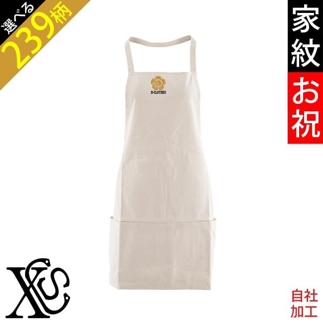 家紋お祝 還暦 ワンポイント 刺繍 オリジナル 柔らかい キャンバス ロゴ エプロン ワンピース レディース メンズ 首掛け おしゃれ ビブ かわいい 男女兼用 ori-a-ep3-g07-s