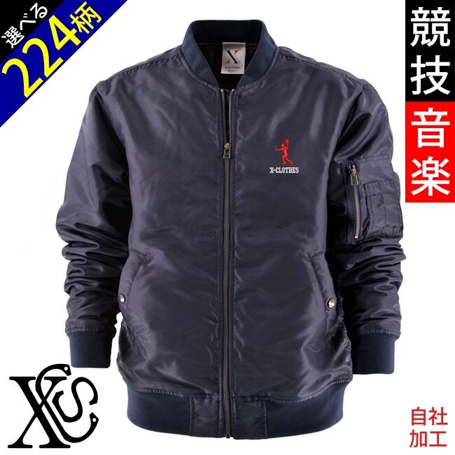 スポーツ シルエット ワンポイント 刺繍 中綿 オリジナル MA-1 ジャケット ミリタリー メンズ ブルゾン ソフトシェル ネック 通気性 撥水性 和柄 ブラック 父の日 卒業 記念品 部活 卒団 サッカー バスケ テニス プレゼント 誕生日 ori-am-jkt3-b08-s