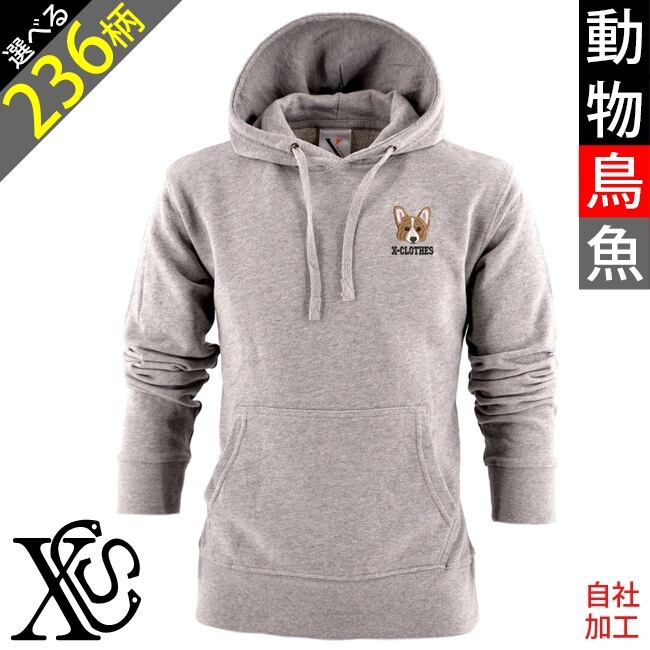 動物鳥魚 刺繍 オリジナル ワンポイント 長袖 プルオーバー メンズ トレーナー 薄手 無地 ロゴ おしゃれ パイル地 スウェット 父の日 柄 馬 鳥 豚 魚 グッズ ori-am-pkn2-g06-s