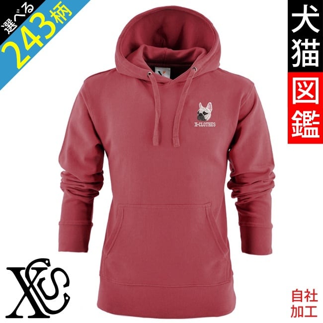 リアル 犬 猫 パーカー 刺繍 プレゼント 長袖 プルオーバー メンズ トレーナー 薄手 オリジナル 無地 ワンポイント ロゴ おしゃれ パイル地 スウェット赤 父の日 グッズ 柄 柴犬 チワワ シーズー シュナウザー パグ フレンチブルドッグ X-CLOTHES 猫図鑑 犬図鑑 ori-am-pkn2-r10-s