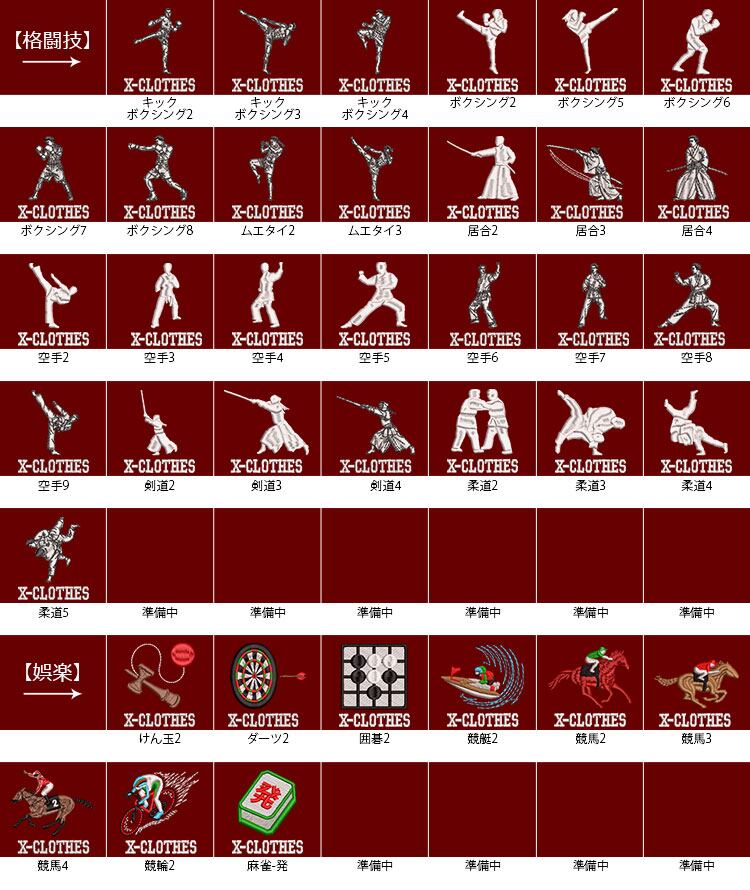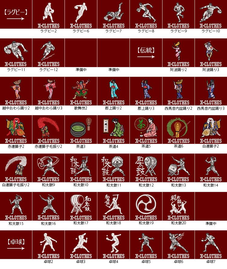 X-CLOTHES 競技音楽一覧:けん玉 アメフト キックボクシング ギター ゴルフ サッカー サックス サーフィン スキー スケートボード スノーボード ダンス ダーツ チューバ テニス トロンボーン ドッチボール ハンドボール バイオリン バスケ バドミントン バレエ バレーボール ピアノ フィギュアスケート フラガール ベース ボクシング ボーリング マラソン ムエタイ ヨガ ラグビー ラケット 体操 剣道 卓球 和太鼓 囲碁 大相撲 居合 弓道 柔道 歌舞伎 水泳 水球 白連獅子 白連獅子毛振り 空手 競艇 競輪 競馬 茶道 西馬音内盆踊り 赤連獅子 赤連獅子毛振り 越中おわら踊り 郡上踊り 野球 釣り 阿波踊り 陸上 陸上走り 音符 麻雀-発 1 2 3 4 5 6 7 8 9 0