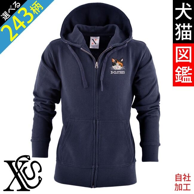 リアル 犬 猫 パーカー 刺繍 プレゼント 長袖 フルジップ メンズ 薄手 オリジナル 無地 ワンポイント ロゴ おしゃれ パイル地 スウェット トレーナー 黒 父の日 グッズ 柄 柴犬 チワワ シーズー シュナウザー パグ フレンチブルドッグ X-CLOTHES 猫図鑑 犬図鑑 ori-am-pzn2-b10-s