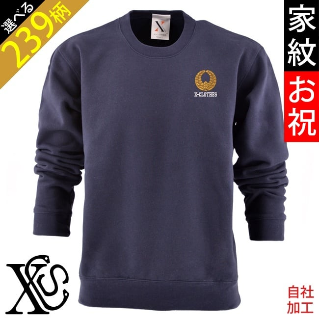 家紋お祝 還暦 ワンポイント 刺繍 オリジナル 裏起毛 スウェット クルーネック メンズ トップス トレーナー スエット 還暦祝い ロンT ロゴ おしゃれ 和柄 ブラック 父の日 グッズ 柄 丸に 五瓜 桔梗 巴 藤 羽 菱 唐花 木瓜 蔦 桐 ori-am-swt3-b07-s