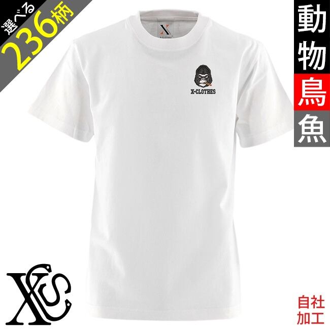 動物鳥魚 刺繍 オリジナル ワンポイント 5.6oz 半袖 Tシャツ メンズ ロゴ おしゃれ tシャツ 無地 カットソー 白 ホワイト グレー 自社ブランド 父の日 柄 馬 鳥 豚 魚 グッズ ori-am-tst2-g06-s
