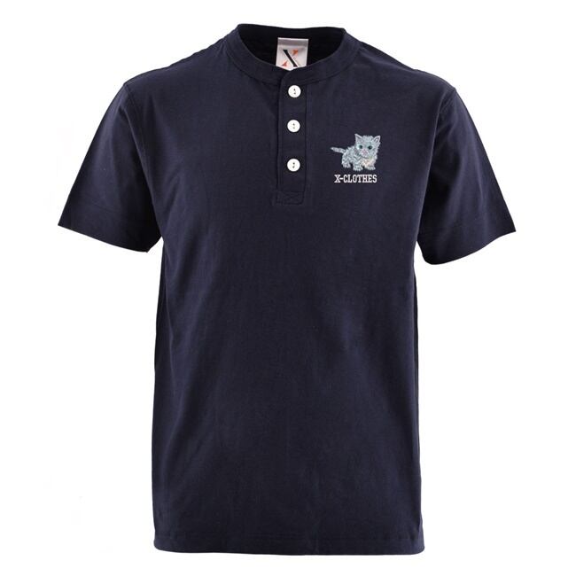 ワンポイント 刺繍 オリジナル 5.6オンス ヘンリーネック Tシャツ メンズ 半袖 カットソー ホワイト 黒 白 柄 ハシビロコウ シマエナガ 猫 犬 馬 パンダ ハリネズミ グッズ ori-am-tst5-b09-s | 刺繍の森X-CLOTHES【公式通販サイト】