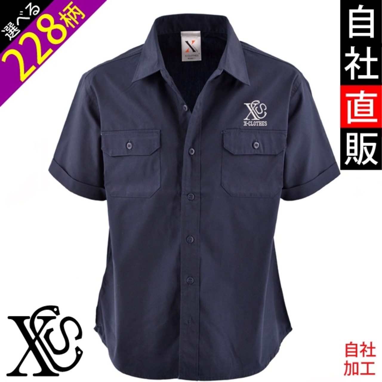 ワンポイント 刺繍 半袖 ワークシャツ メンズ オリジナル 黒 ブラック ネイビー ロゴ ギフト プレゼント 誕生日 お祝い 父の日 母の日 北欧 グッズ ori-am-wst2-b02-s | 刺繍の森X-CLOTHES【公式通販サイト】