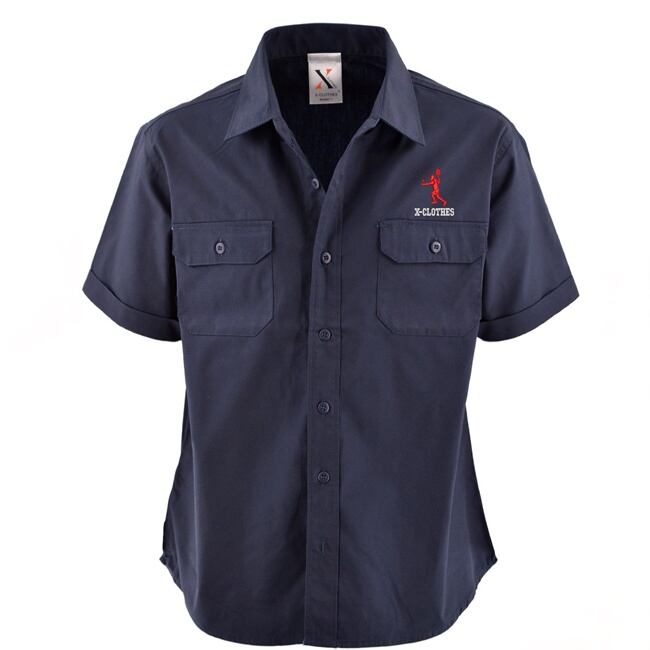 ワンポイント 刺繍 半袖 ワークシャツ メンズ オリジナル 黒 ブラック ネイビー ロゴ ギフト プレゼント 誕生日 お祝い 父の日 母の日 卒業 記念品 部活 卒団 サッカー バスケ テニス グッズ ori-am-wst2-b05-s | 刺繍の森X-CLOTHES【公式通販サイト】