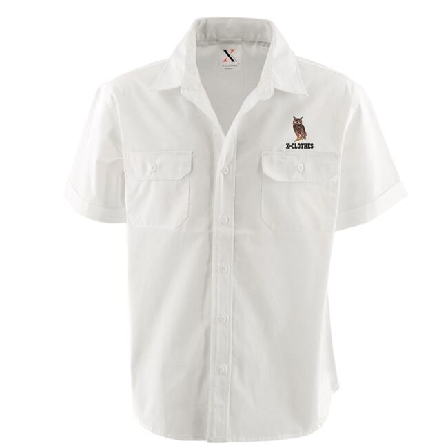 ワンポイント リアル 刺繍 半袖 ワークシャツ メンズ オリジナル ホワイト 白 モカ ロゴ ギフト プレゼント 誕生日 お祝い 父の日 母の日 柄 ハシビロコウ シマエナガ 猫 犬 馬 パンダ ハリネズミ グッズ ori-am-wst2-g09-s | 刺繍の森X-CLOTHES【公式通販サイト】
