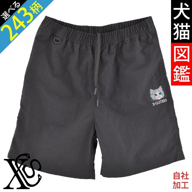リアル 犬 猫 ワンポイント 刺繍 オリジナル オーダーメイド ナイロン イージー ショーツ ハーフパンツ ショートパンツ メンズ 母の日 ロゴ グッズ 柄 柴犬 チワワ シーズー シュナウザー パグ フレンチブルドッグ ori-a-pat9-b10-s