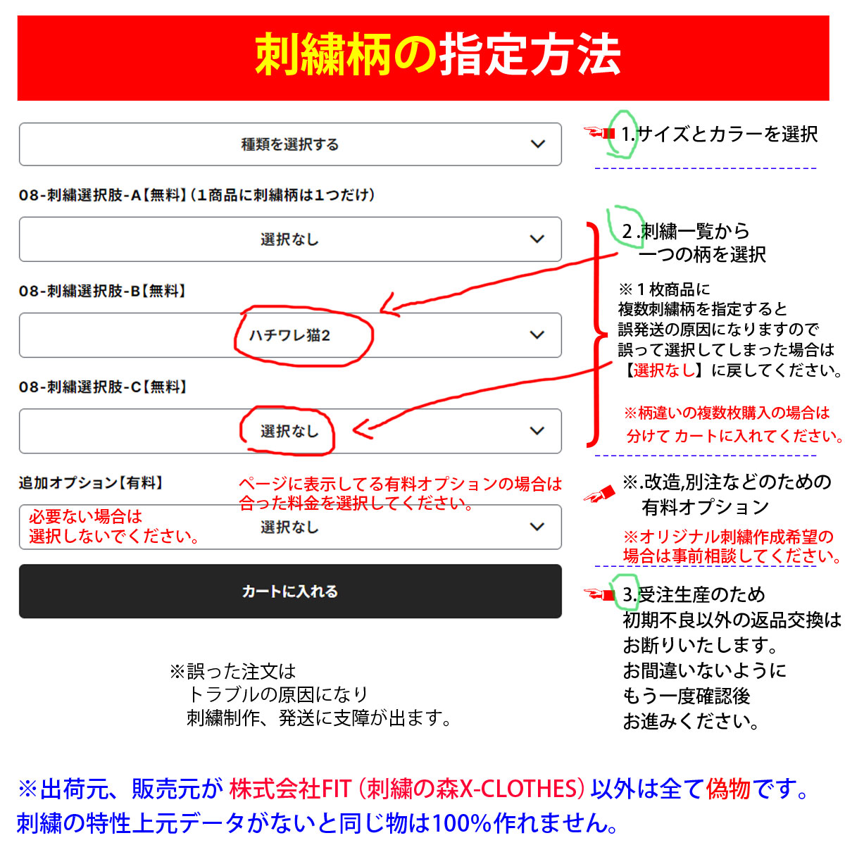 対応刺繍一覧:X-CLOTHES アイナメ アオリイカ アカハタ アカメバル イトウ オジサン オニカサゴ カワハギ カンパチ キジハタ シロギス キンメダイ クエ クロダイ サケ シーバス シマアジ カメ セマルハコガメ トラフグ ナマズ ニジマス ハリセンボン ヒラマサ ヒラメ ブラックバス ブリ マアジ マゴチ 跳ねる ハート魚 日の丸魚 鯛 バラパグ ボーダーコリー 柴犬 怒る ミニチュア ピンシャー ラブラドール レトリバー スロット ダーツ チューリップ ばれたか プロビデンスの目 ベース 旭日旗 競馬 隈取 蛇ウロボロス 水球 バイク キャベツ クロワッサン たまねぎ ニンニク ネギ ピーマン メロンパン 国産米 ウサギ かかってこい シーサー ハリネズミ 祈りナマケモノ マーモット 恐竜化石 見ざる 言わざる 聞かざる 子豚 狼 蜈蚣 印鑑 シャー ロシアンブルー ハチワレ 黒猫 白猫 ホシガラス 鴨 雷鳥 還暦 古希 喜寿 傘寿 米寿 卒寿 白寿 無限 標識 【A】さくら アインシュタイン サンタクロース セクシーガール チェゲバラ ひょっとこ 鬼丸 宮本武蔵 恵比寿天 佐々木小次郎 坂本龍馬 死神 小面 織田信長 青鬼 赤鬼 大黒天 徳川家康 能面翁 般若 美人 豊臣秀吉 干支 1 2 3 4 5 6 7 8 9 0 苗字族 ロゴ 名字