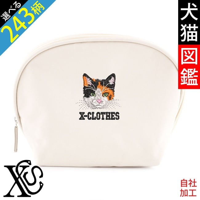 リアル 犬 猫 ワンポイント 刺繍 ベーシック シェルポーチ オリジナル インナーバッグ 収納バッグ 自立 大容量 ポーチ レディース 整理 整頓 おしゃれ グッズ 柄 柴犬 チワワ シーズー シュナウザー パグ フレンチブルドッグ X-CLOTHES 猫図鑑 犬図鑑 ori-a-bag6-g10-s